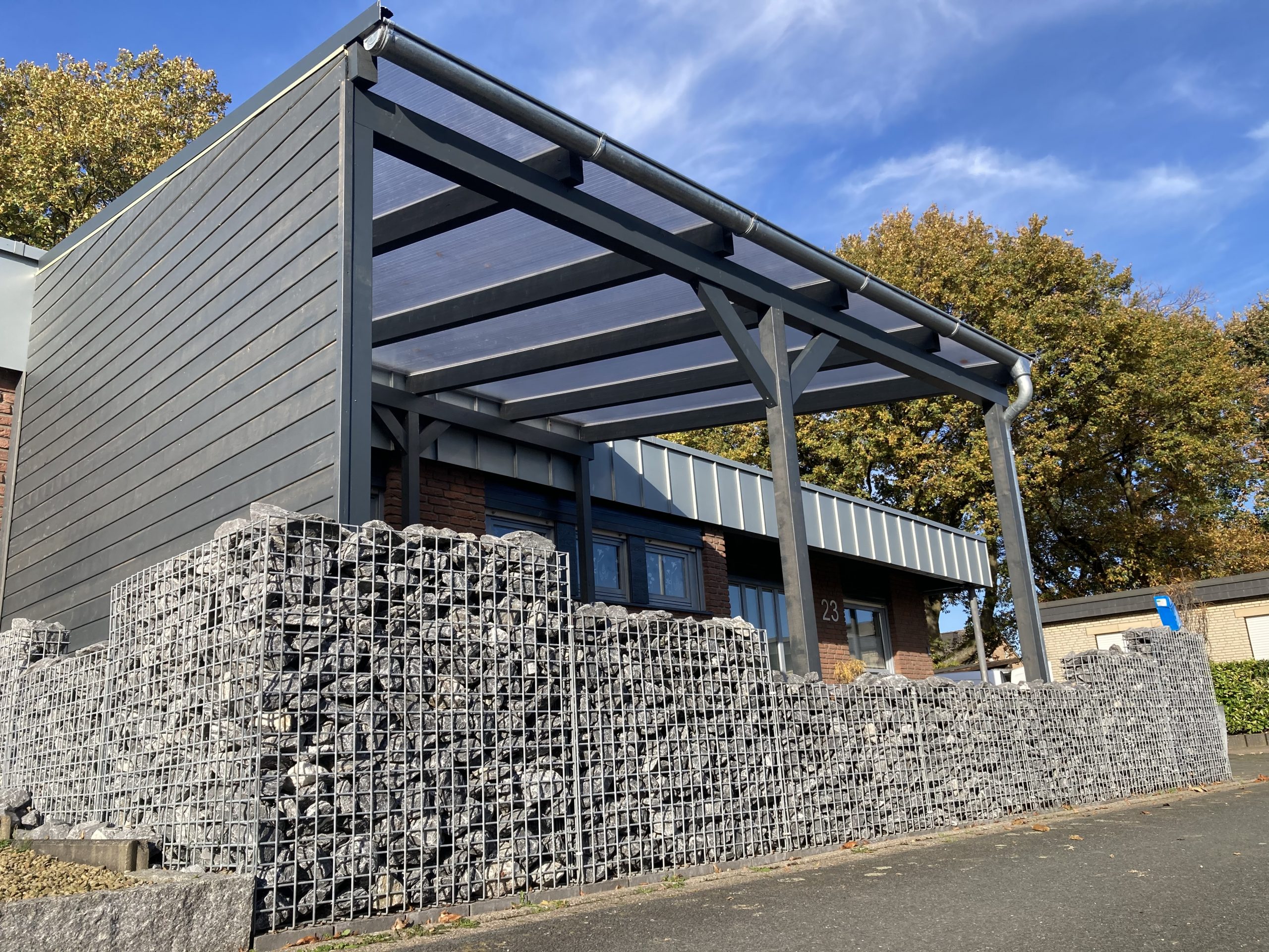 Stilvolles Carport-Design: Unsere Carports sind nicht nur funktional, sondern auch visuell ansprechend gestaltet. Sie fügen sich harmonisch in die Architektur Ihres Hauses ein und verleihen Ihrem Anwesen einen eleganten Touch.